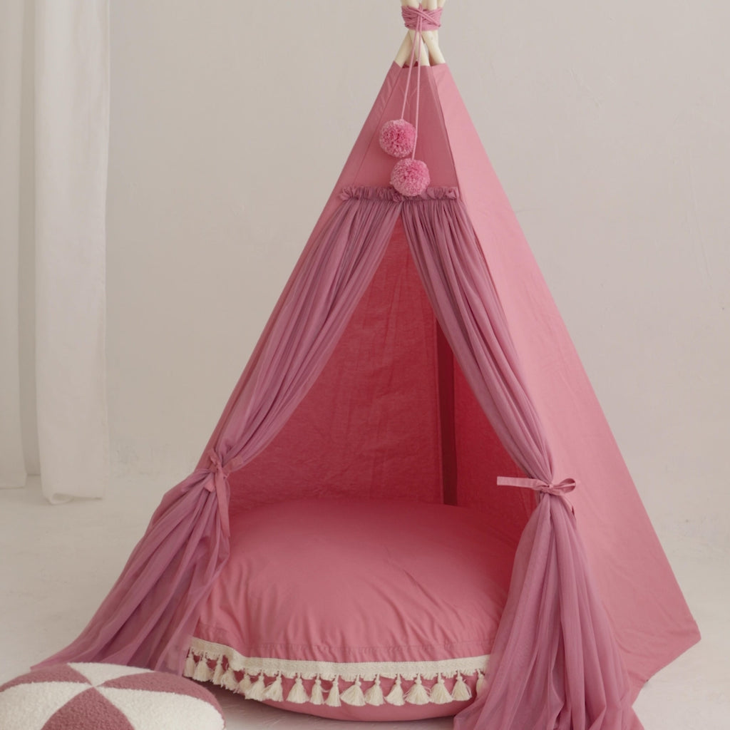 MINICAMP grindų pagalvė su kutais, aviečių spalvos ROSE