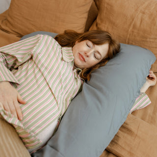 MINICAMP U-Shaped Pregnancy Pillow with Natural Sateen Cotton Cover in Stone Blue | Kapok or PES Filling