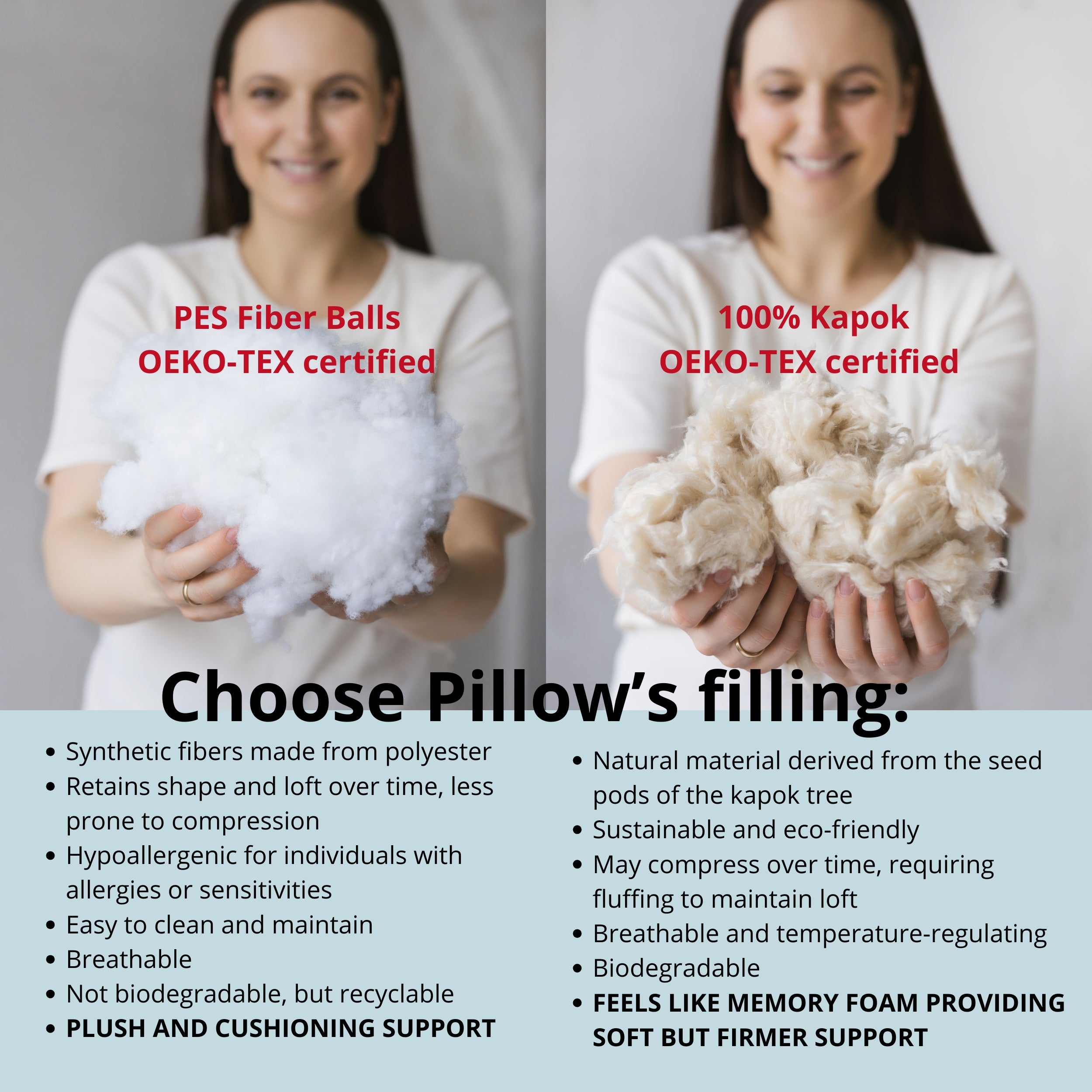 Designed with flexibility in mind, the U-shape supports a variety of comfortable positions. Great for maternity comfort, feeding time, or simply enhancing your nightly routine. Choose between natural Kapok or PES fiber filling to suit your preferences.