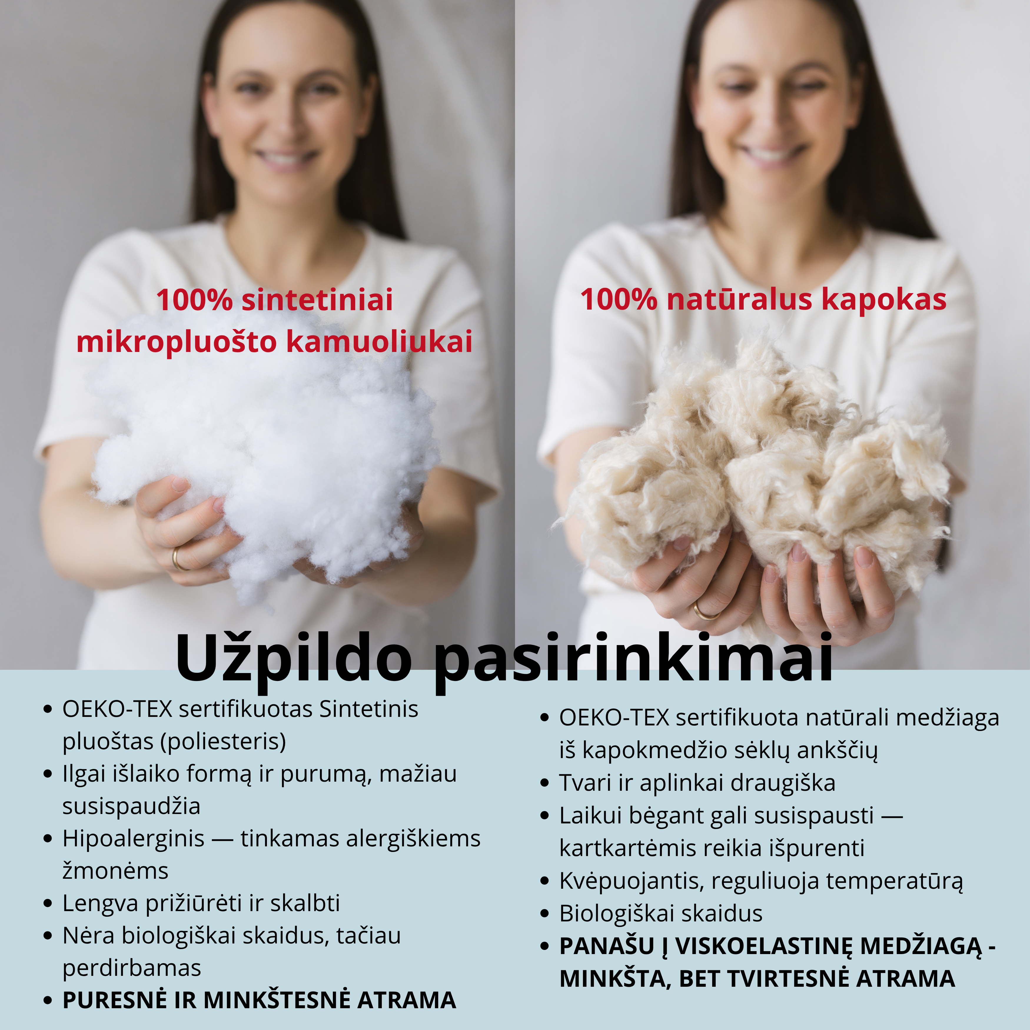 Galite rinktis iš dviejų Oeko-Tex sertifikuotų užpildų: