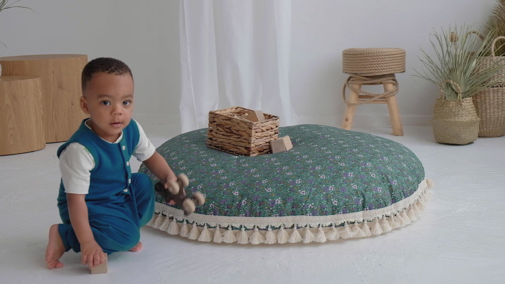 The Large Floor Pillow for Kids, perfect for creating a cozy reading nook in green, is an inviting addition to any child’s room or play area. Its generous size provides a comfortable space for play, reading, or lounging, ideal for children of all ages.