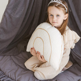 MINICAMP Bouclé Circus-Style Rose and White Throw Pillow with Chic Golden Trim
