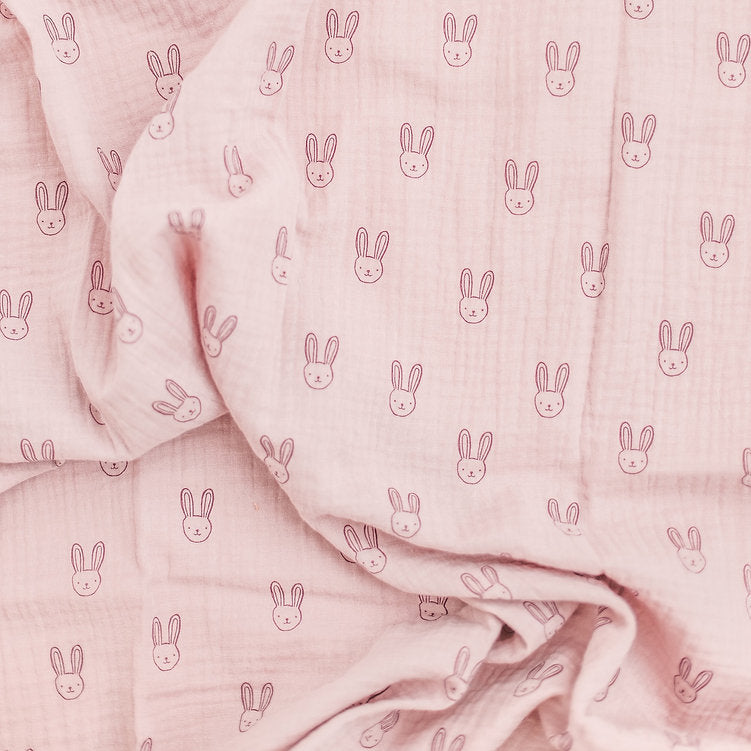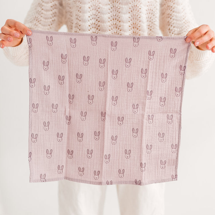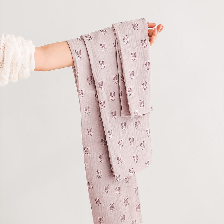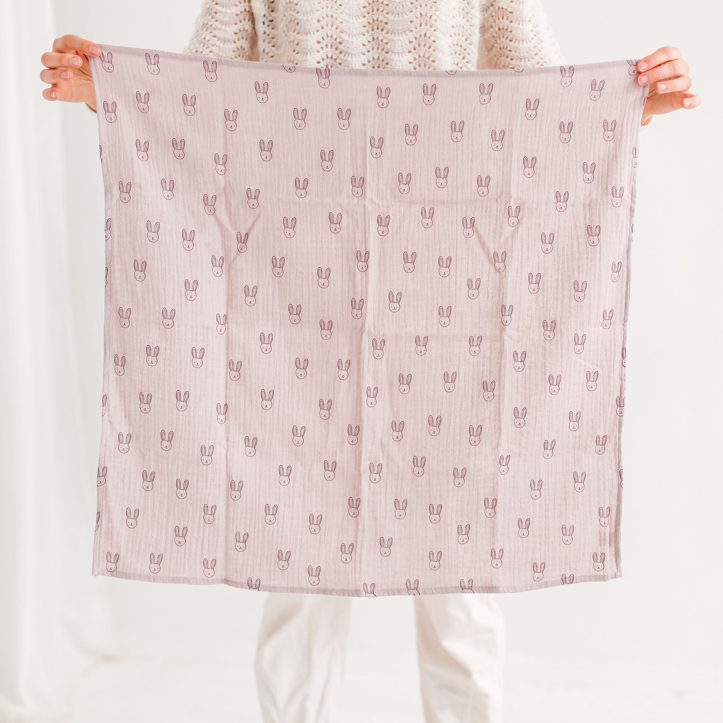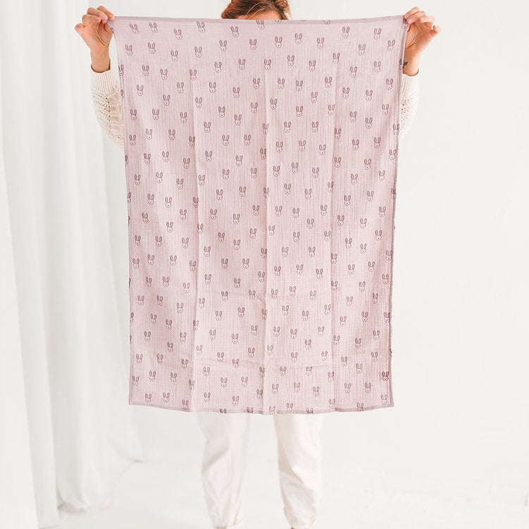 Pastel Lilac Muslin Baby Swaddle & Burp Cloth – 100% GOTS Cotton, Breathable Double Gauze with Bunnies Print