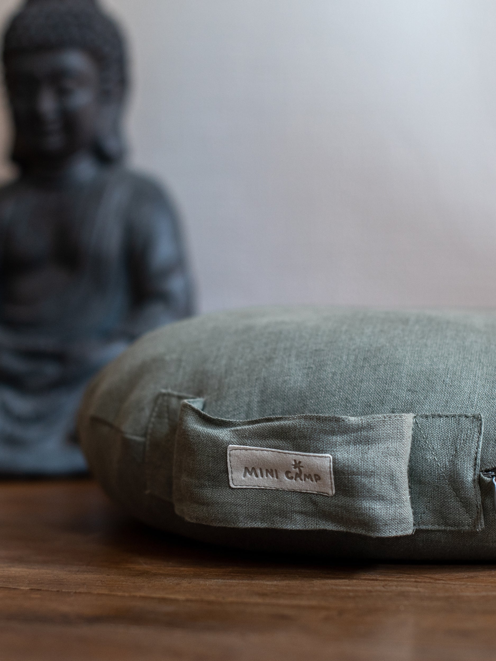 MINICAMP Yoga Pillow Meditation Cushion from 100% Linen in Forest Green