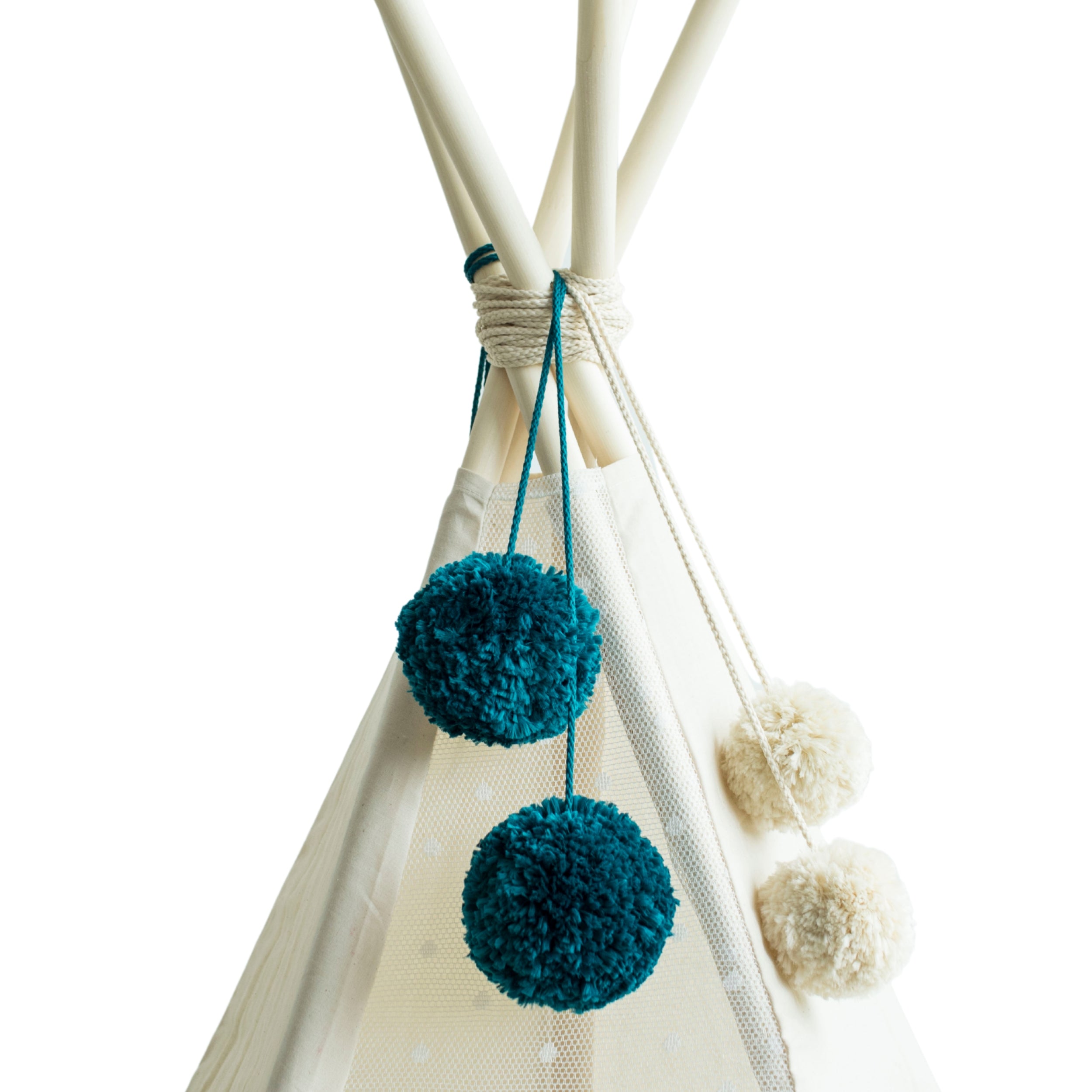 Add a natural, stylish touch to your space with our Emerald Pom Poms—perfect for teepee tents, nurseries, and boho-chic decor. Each pom-pom is 100% handmade from polyester yarn, ensuring a rich, long-lasting color and quality. Whether used as teepee toppers, playful accents, or event decor, these charming pom-poms enhance bedrooms, playrooms, gardens, and celebrations.