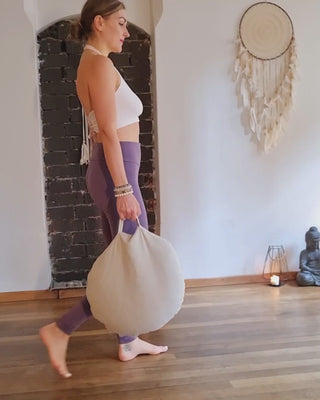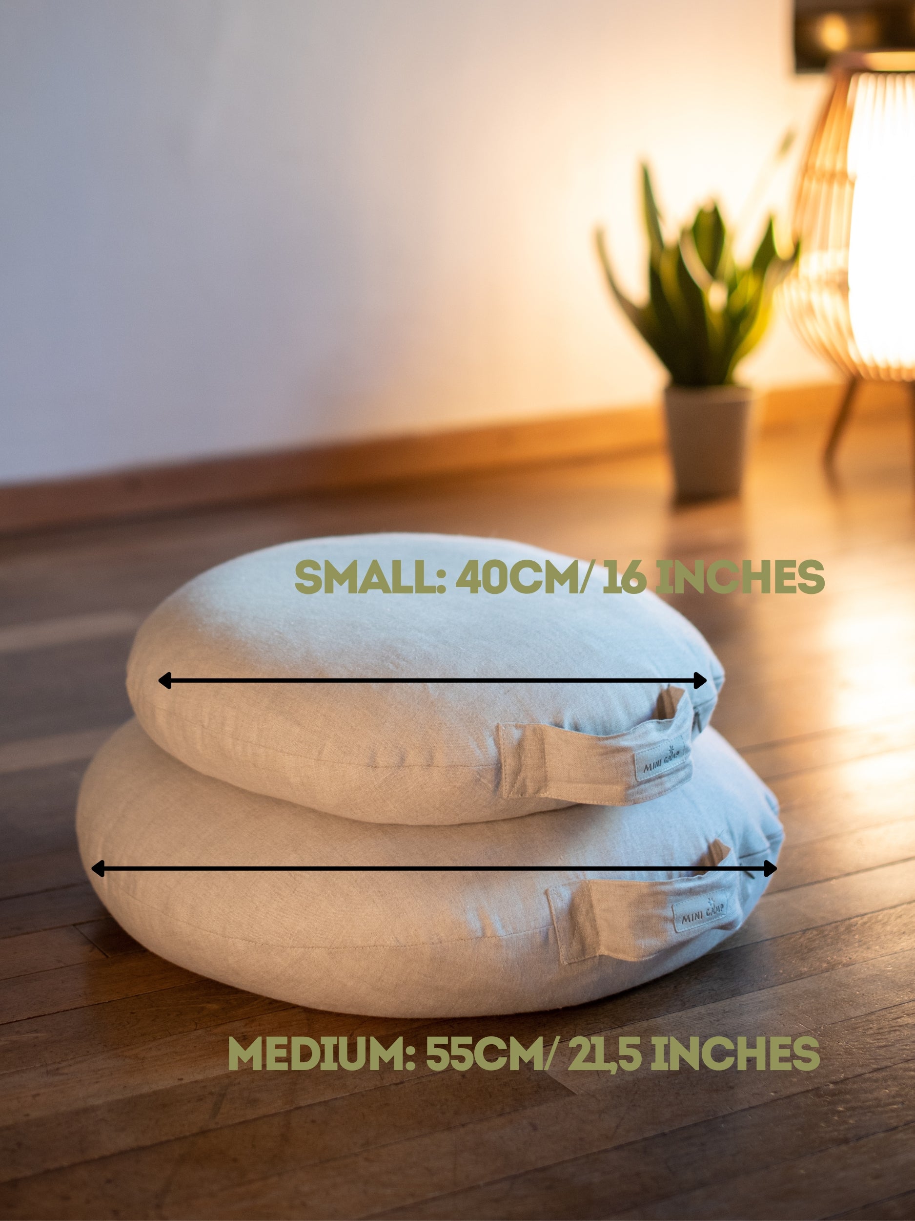 Ši meditacinė pagalvė yra dviejų apvalių pagalvių dydžių arba kaip universali pagalvėlė, kuri palaiko įvairias jogos padėtis ir atsipalaidavimo būdus. Kiekviena pagalvėlė yra kruopščiai užpildyta natūraliais grikių lukštais, vertinamais dėl jų pralaidumo orui, biologinio skaidumo ir hipoalerginių savybių, sukuriant vėsų, stabilų ir palaikantį pagrindą.
