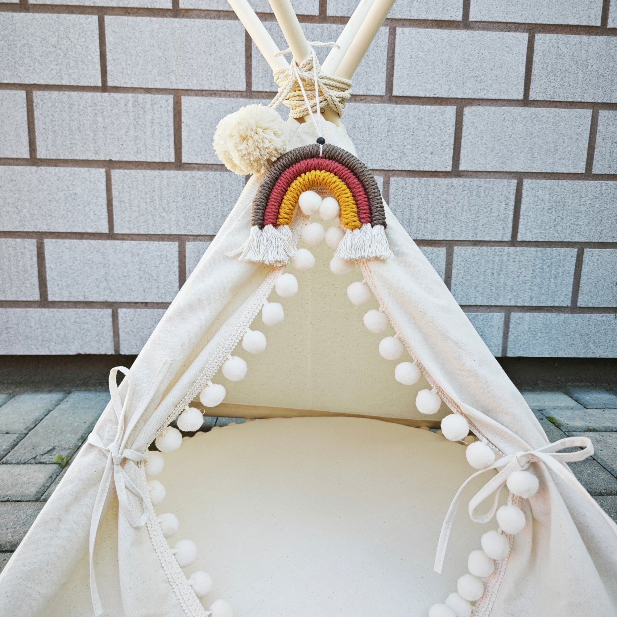 MINICAMP Macrame Rainbow pakabinamas ant sienos menas, skirtas Teepee dekorui – raudona geltona