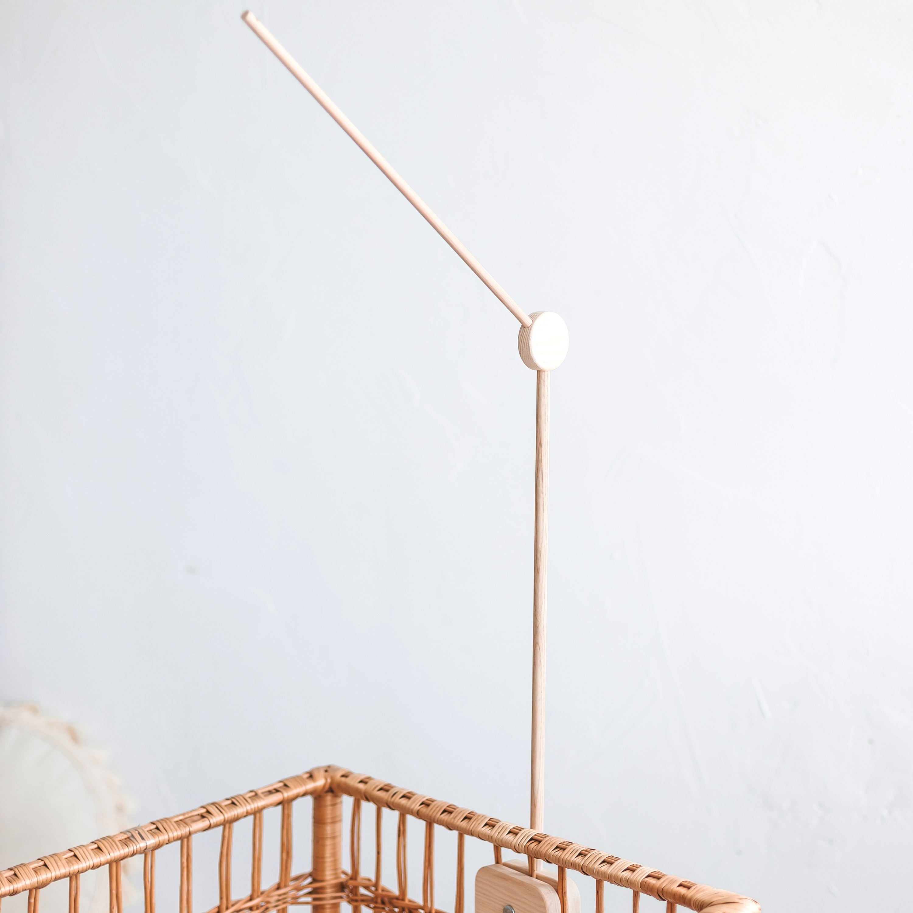 MINICAMP mobiliojo laikiklis pagamintas iš uosio masyvo, todėl saugiai ir stilingai pakabinti kūdikio mobilųjį telefoną virš lovelės. Natūrali mediena yra šlifuota lygiai, nedažyta ir kruopščiai pagaminta rankomis, todėl ji yra 100% ekologiška ir ekologiška.