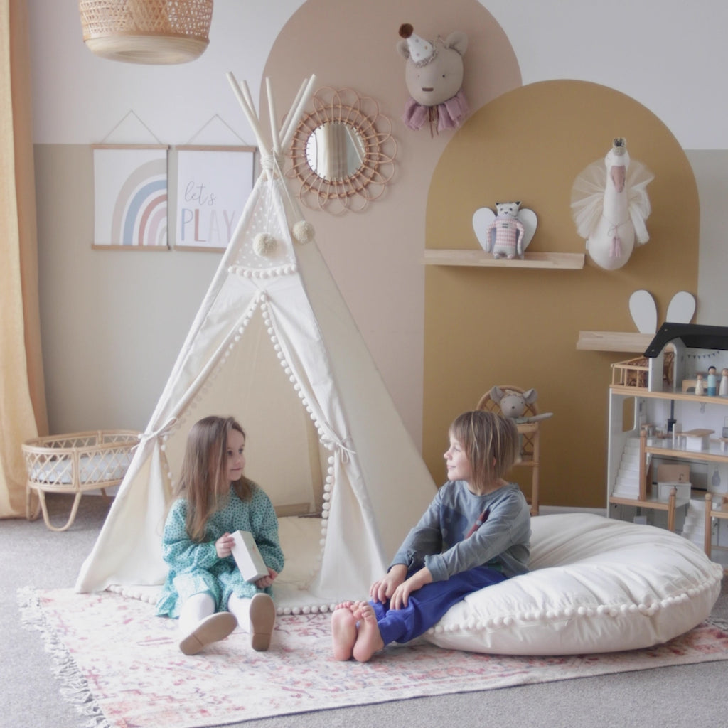 Populiariausias ir žinomumą atnešęs MINICAMP tipis palapinė, dekoruota burbuliukų juosta. Universalus dizainas, derantis tiek prie berniuko, tiek prie mergaitės kambario interjero.