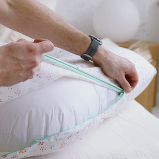 NATŪRALIAI PRABANGUS IR Kvėpuojantis: Pagaminta iš 100 % plonos poplininės medvilnės, sertifikuota GOTS, mūsų motinystės pagalvės užvalkalas yra ypač minkštas ir patogus. Be to, jis sklandžiai dera su jūsų patalyne ir sukuria natūralią miegamojo atmosferą.
