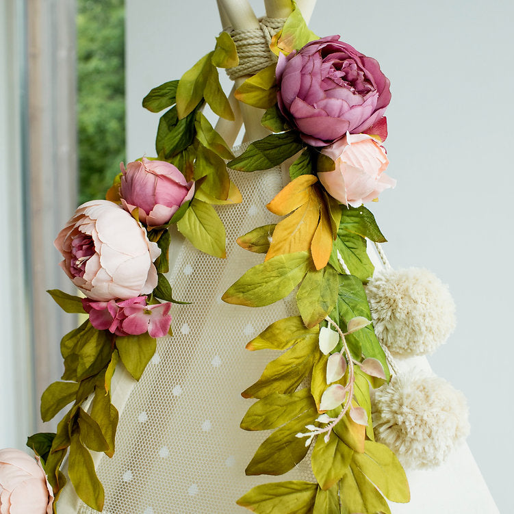 Pridėkite boho žavesio bet kurioje erdvėje su mūsų bijūnų gėlių girlianda. Ši graži girlianda, pagaminta iš tikroviškų dirbtinių bijūnų, sukurta taip, kad jūsų vaikų trišukui būtų nuostabi apdaila. Tai ne tik trišuoliams, bet ir puikiai papuoš darželius, žaidimų kambarius ar bet kurį jūsų namų kambarį, kuriam reikia švelnaus gėlių prisilietimo.
