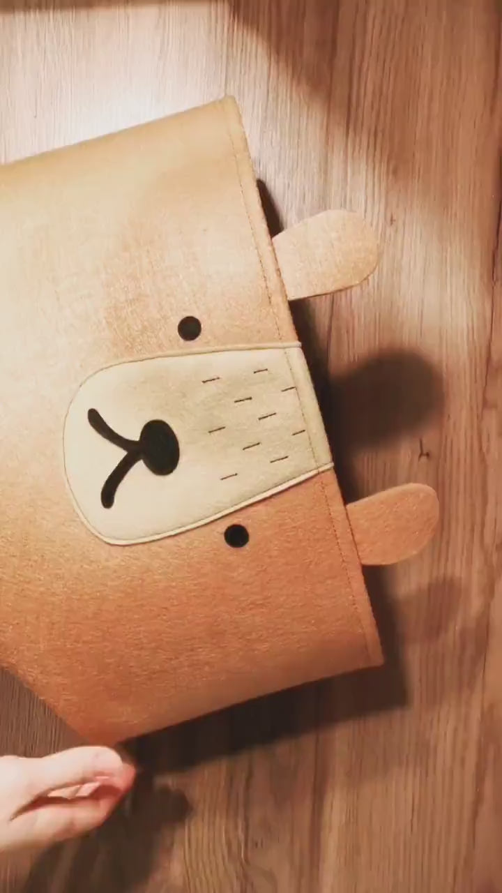 Šis rudas meškučio formos veltinio krepšys yra praktiškas ir estetiškas daiktų laikymo sprendimas kūdikio ir vaikų kambariui, kūdikio kambariui ar žaidimų erdvei. Paprastas dizainas ir šiltas rudas atspalvis suteikia jaukumo bei puikiai dera prie miško ar natūralios tematikos interjero.
